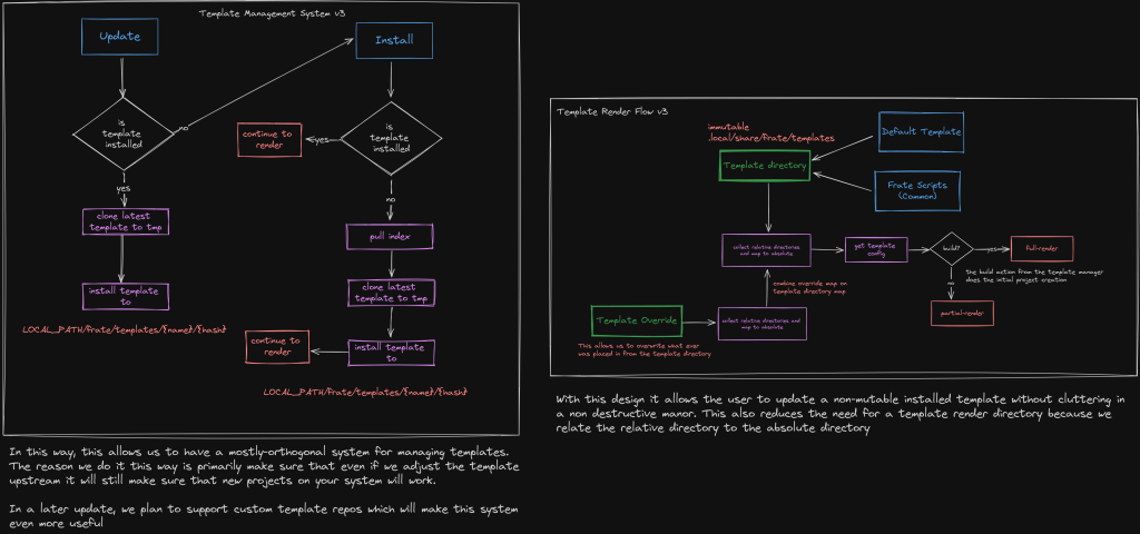 Anway, the new renderer uses the TMS’s templates as a immutable reference to the template and an override system inside the users project which is totally optional. By default you have project modes, dependency management, and user defined variables(implemented by the template author).